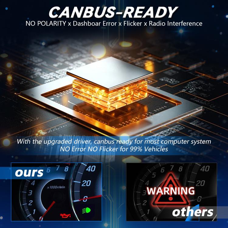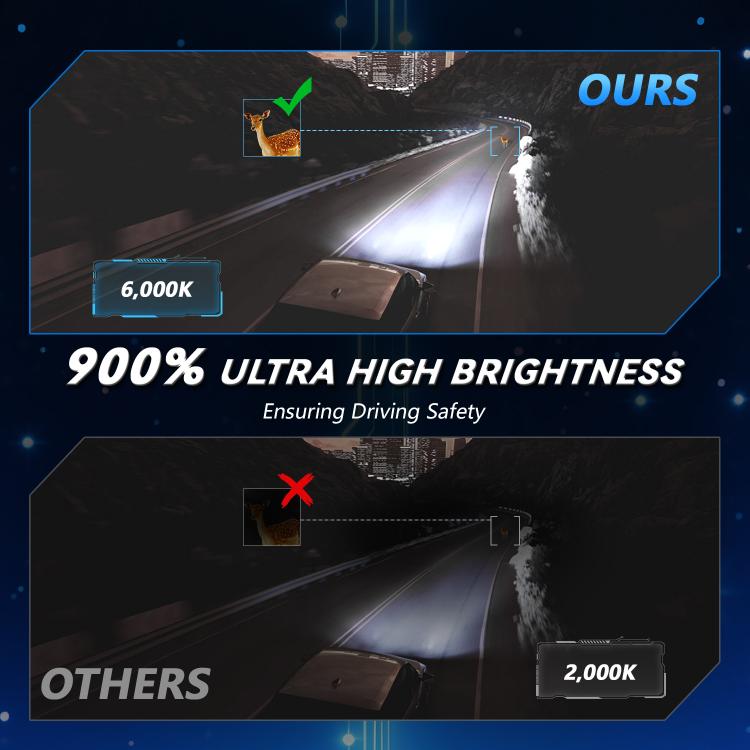 5. Constant current intelligent temperature control module: built-in temperature control intelligent drive, can identify the temperature of the lamp body, share the heat; avoid the risk of burning the lamp, reduce the temperature of the headlight, and extend the life. The use of high-power modules can better adapt to the changes in the instantaneous starting voltage of the car, completely isolate the interference of electromagnetic waves on the car audio and driving computer, making the headlight products more stable and more efficient.