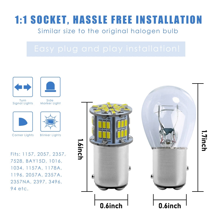 1 Pair E0052 9-14V 1157-54SMD-2835 6000K 1080LM White Light Car Decoding Brake Driving Light