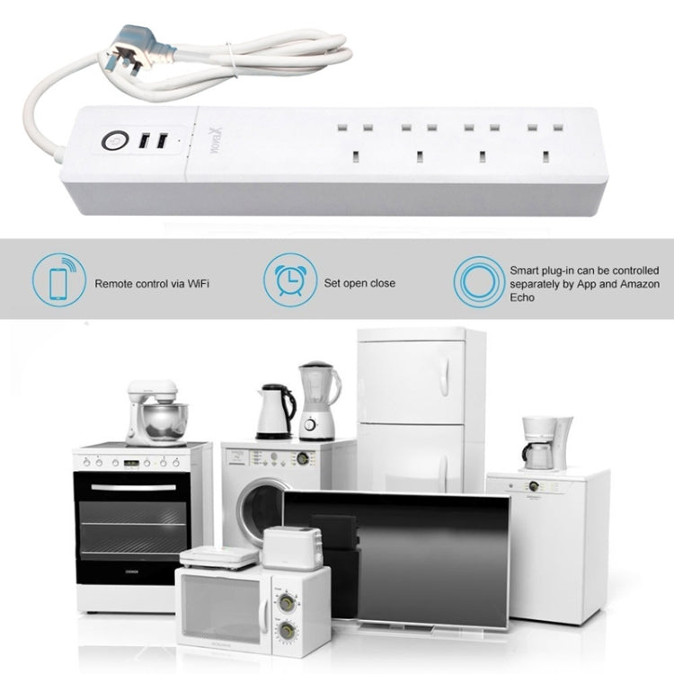 2 x USB Ports + 4 x UK Plug Jack WiFi Remote Control Smart Power Socket Works with Alexa & Google Home, Cable Length: 1.8m, AC 90-265V, UK Plug