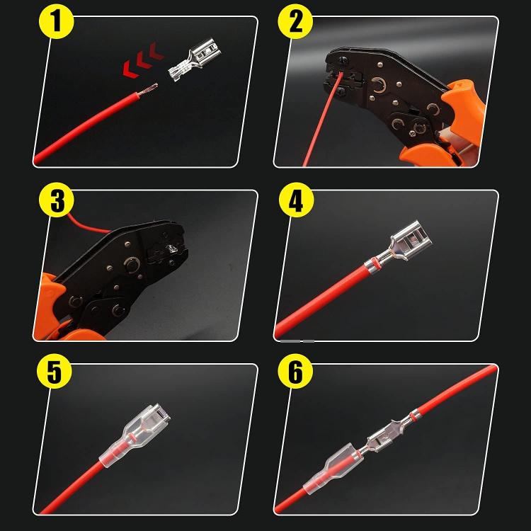 6. The male and female connectors come in three different sizes: 2.8mm/4.8mm/6.3mm, ideal for 22-14 gauge wire. Different sizes are available to meet your specific needs.