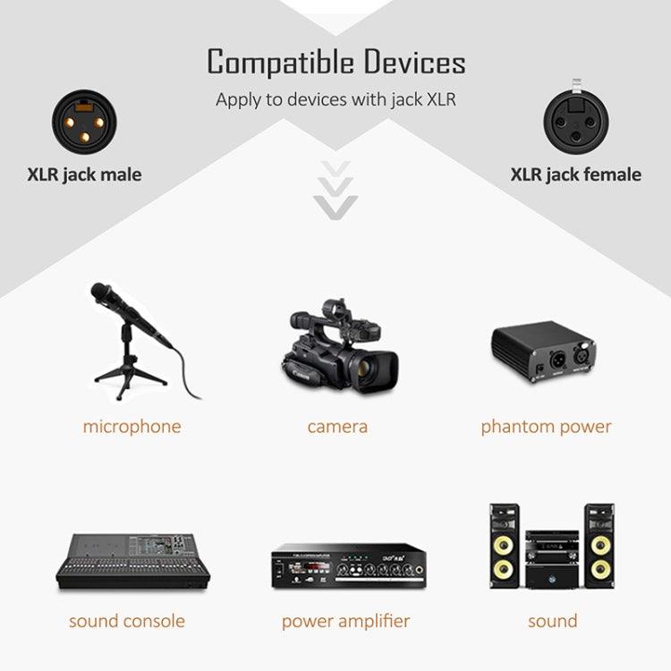2.Connectors: 3-Pin XLR Female to 3-Pin XLR Male.