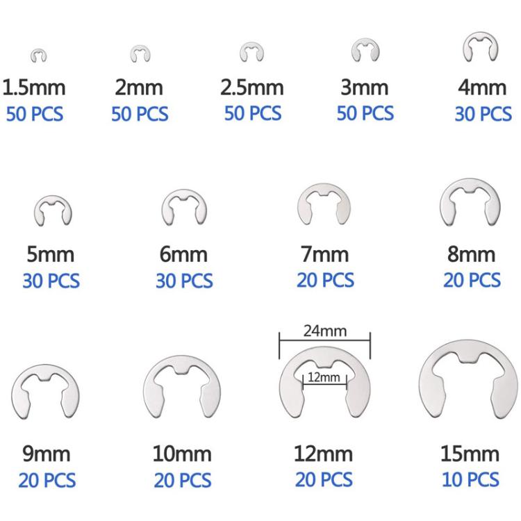 400pcs /Set 1.5-15mm Stainless Steel E-Type Open Circlips Boxed