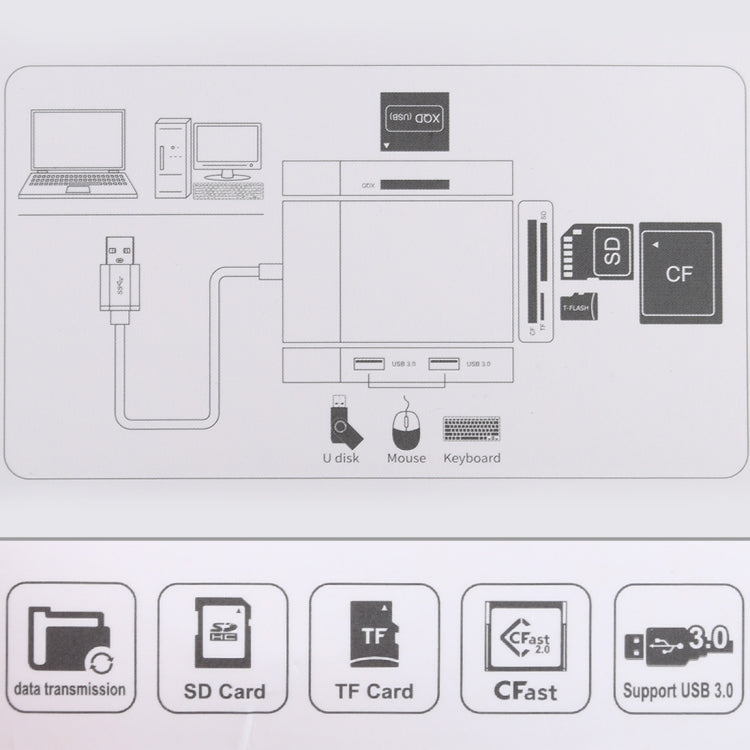 5 In 1 Dual USB 3.0 + CF + TF + SD Multi-function USB 3.0 Card Reader