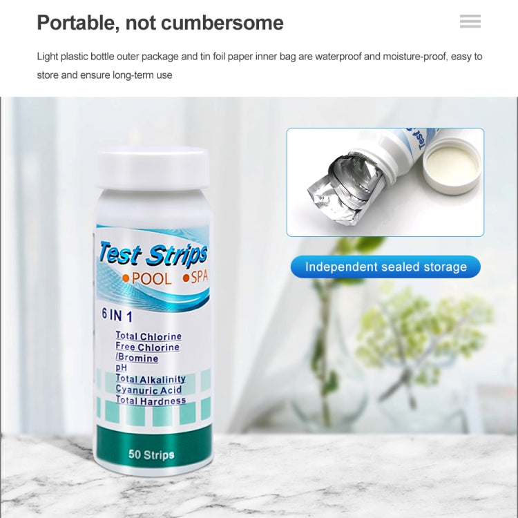 50pcs PH075 6 In 1 Residual Chlorine PH Water Quality Detector PH Test Paper, Package Random Delivery