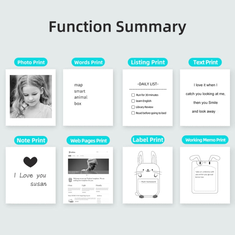 7. All-in-one printer: supports multiple functions, can print photos, labels, messages, lists, records, files, etc.