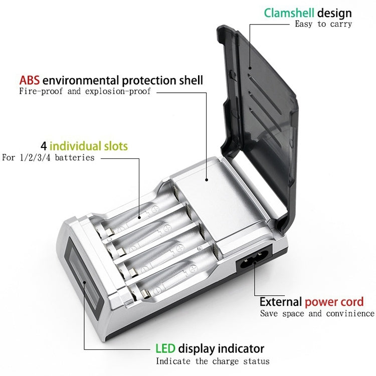 AC 100-240V 4 Slot Battery Charger for AA & AAA Battery, with LCD Display, UK Plug