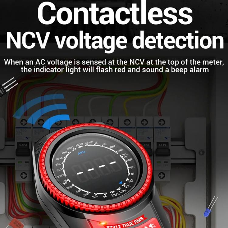 15. NCV non-contact voltage detection, when the NCV sensor is close to the AC voltage, the indicator light will flash and emit a buzzing alarm. The closer the distance, the more urgent the alarm.