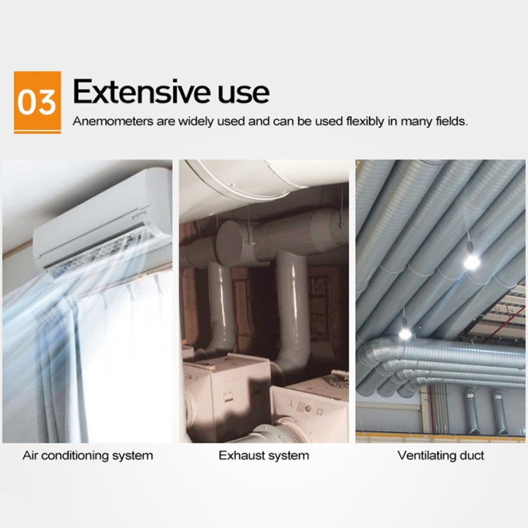 2. Measuring range: Air velocity, 0-30m/s; Air temperature, 0 - 45C, 32 - 113F; Air volume, 0-999900m3/min