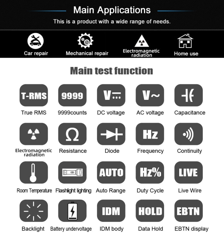 5. Frequency: 10HZ~1000Hz, 1Hz, +/-(2.0%+10)