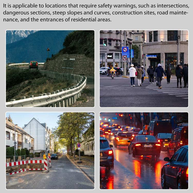 10. Suitable for intersections, dangerous roads, steep slopes and curves, construction sites, road maintenance, community entrances, and other locations requiring safety warnings