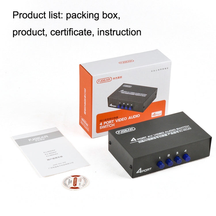 FJGEAR FJ-401AV Lotus Head Interface 4-way AV Audio and Video Switcher