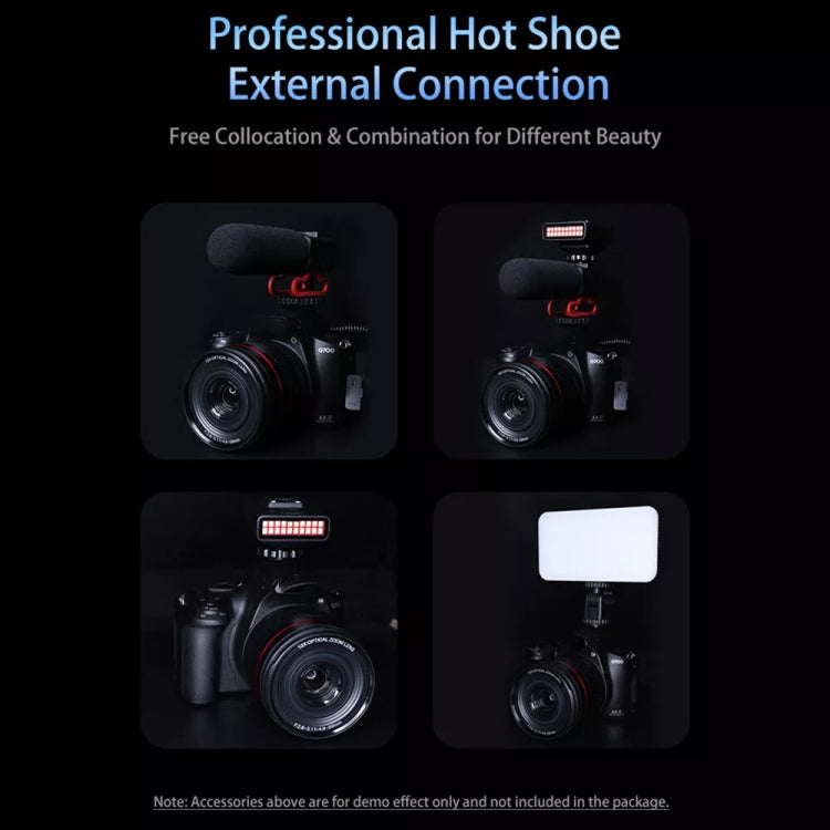 7. Hot shoe external connection can be freely matched with a variety of combinations, such as fill light, microphone, etc. (not included)