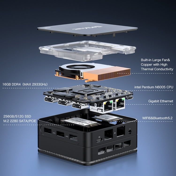GMK KB7 Windows 11 Pro Mini PC, 16GB+512G, Intel Pentium Silver N6005 Quad Core, Support WiFi & BT