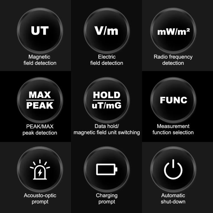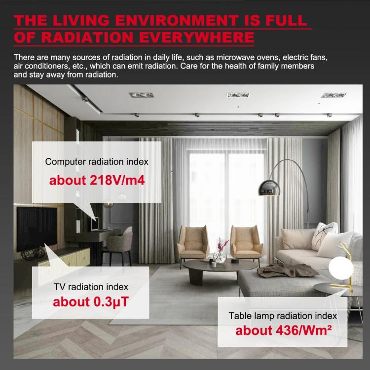 1. Built-in high-precision electromagnetic radiation sensor and microcontroller chip processor can quickly and accurately measure the electromagnetic radiation value.