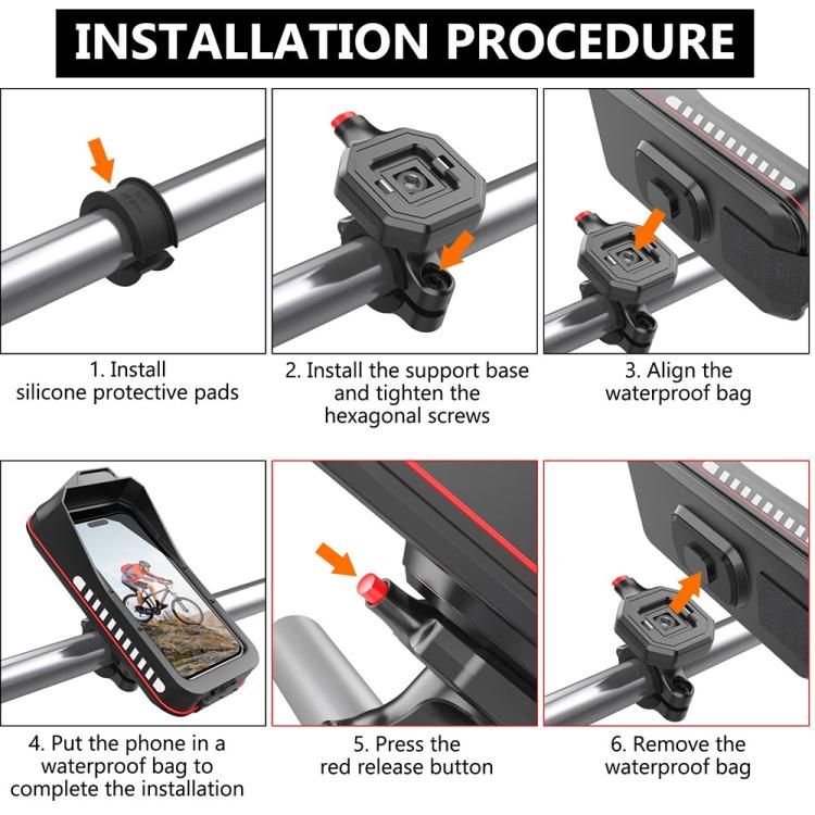 3. Secure installation: The adjustable design is suitable for handlebars of different diameters, ensuring that your phone can be safely fixed without shaking even in high-speed riding or bumpy terrain.