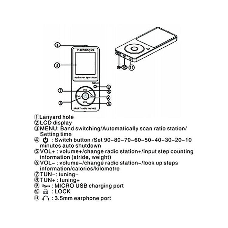 HRD-602 Digital Display FM AM Mini Sports Radio with Step Counting Function