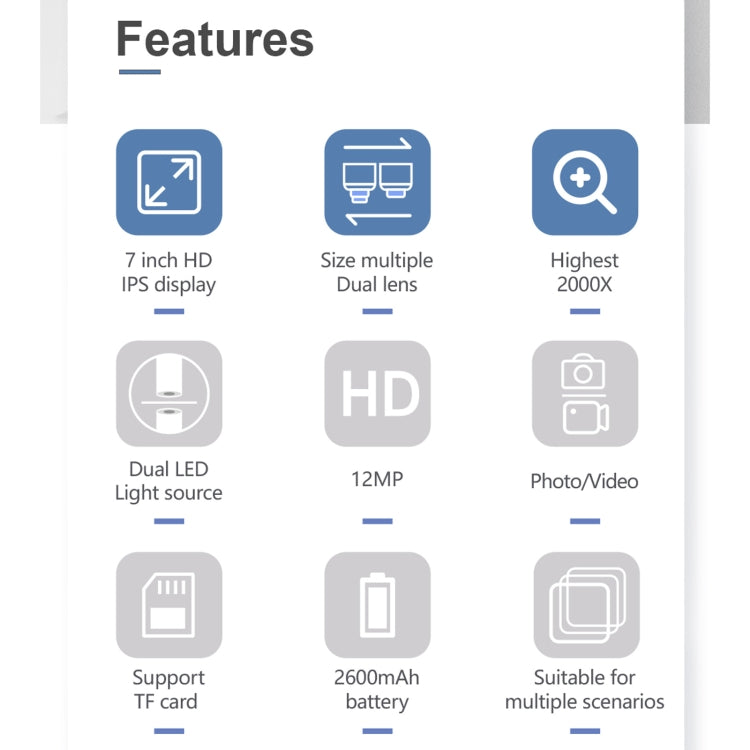 inskam315 7 inch IPS Screen 2000X 12MP HD Digital Microscope