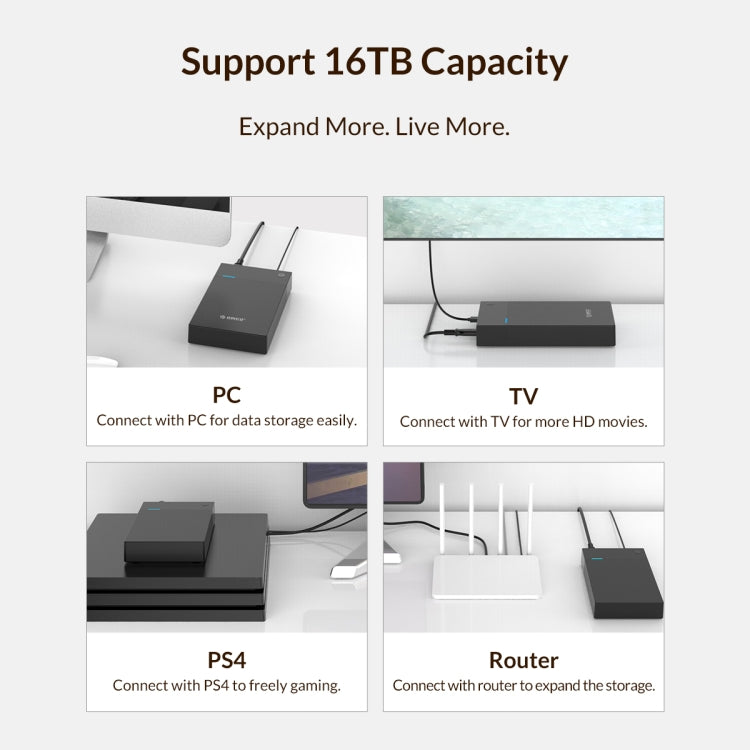 ORICO 3599U3 2.5 / 3.5-Inch Portable Hard-Drive Enclosure, EU Plug