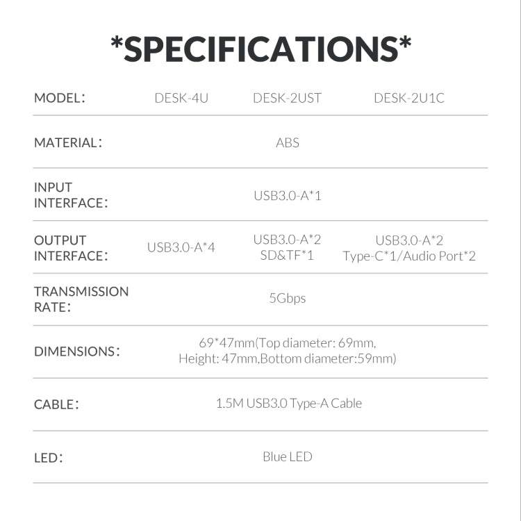 ORICO DESK-4U-BK 4 USB3.0 Port Multifunction Desktop Hub