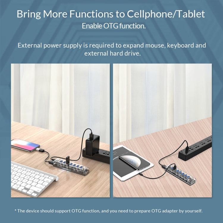 ORICO F7U 7 x USB 3.0 Ports 5Gbps Fast Transmission Desktop HUB with Blue LED Indicator Light