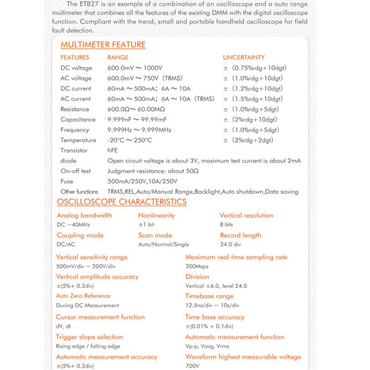 Oscilloscope Multimeter 200Msps Sampling Rate 40MHz Oscilloscope + Multimeter 2 In 1