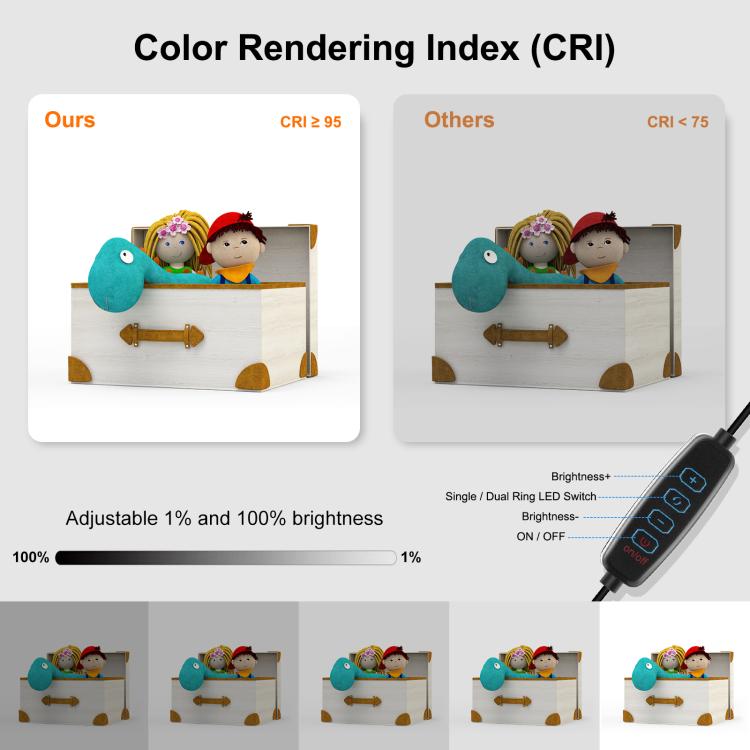 5. Adopt CRI97 color temperature ring light board, built-in particulate silver film reflective fabric inside diffuses light evenly and avoid vignette.