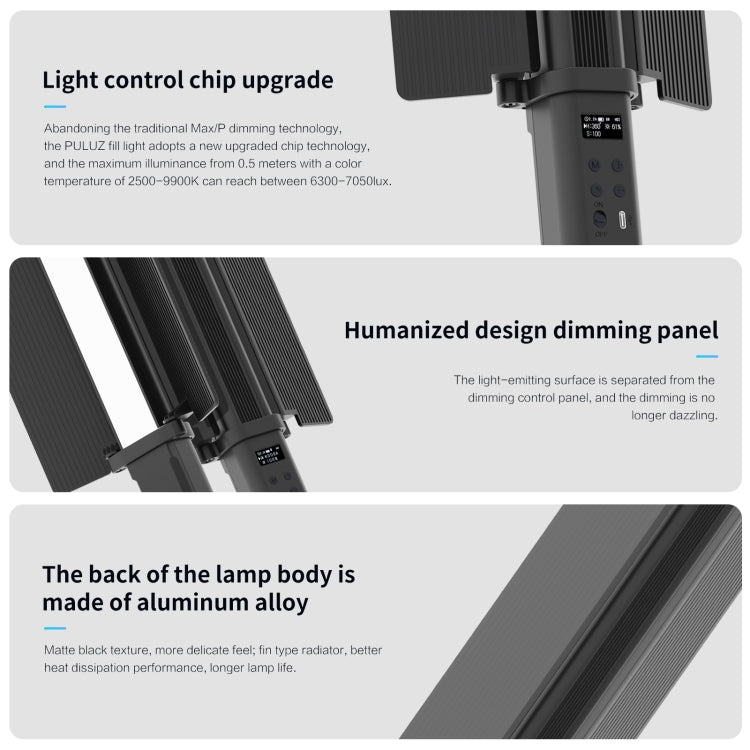 PULUZ 72 LEDs Photo Handheld Stick Light Full Color RGB Fill Light with Barndoor