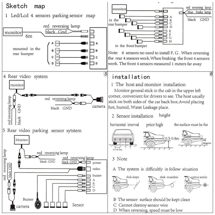 PZ-300-8 Car Parking Reversing Buzzer LED Monitor Parking Alarm Assistance System with 4*7m Front Sensors and 4*2.5m Rear Sensors