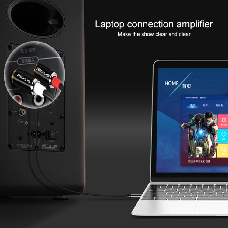REXLIS 3635 3.5mm Male to Dual RCA Gold-plated Plug Black Cotton Braided Audio Cable for RCA Input Interface Active Speaker, Length: 3m