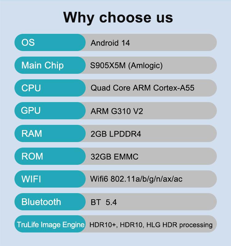 10. Interface: 1*HDMI 4Kx2K 60fps max resolution output, 1**USB 2.0, 1*TF Card, 1*3.5mm IR remote, 1*TYPEC 5V 1A