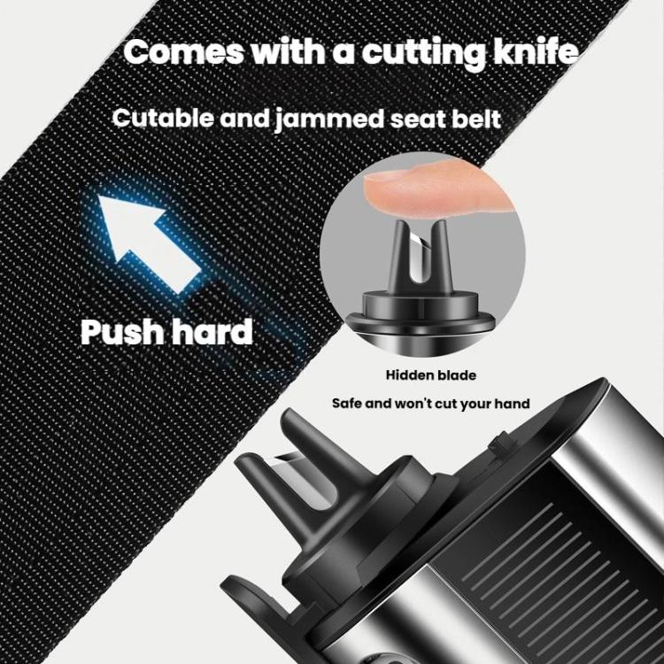 7. Comes with a cutting knife and window breaking hammer, can cut stuck seat belts in an emergency, can break car windows