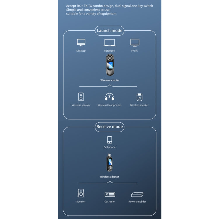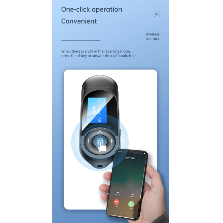 2. Function: Bluetooth audio receiving and transmitting combo, support hands-free call, LCD screen display