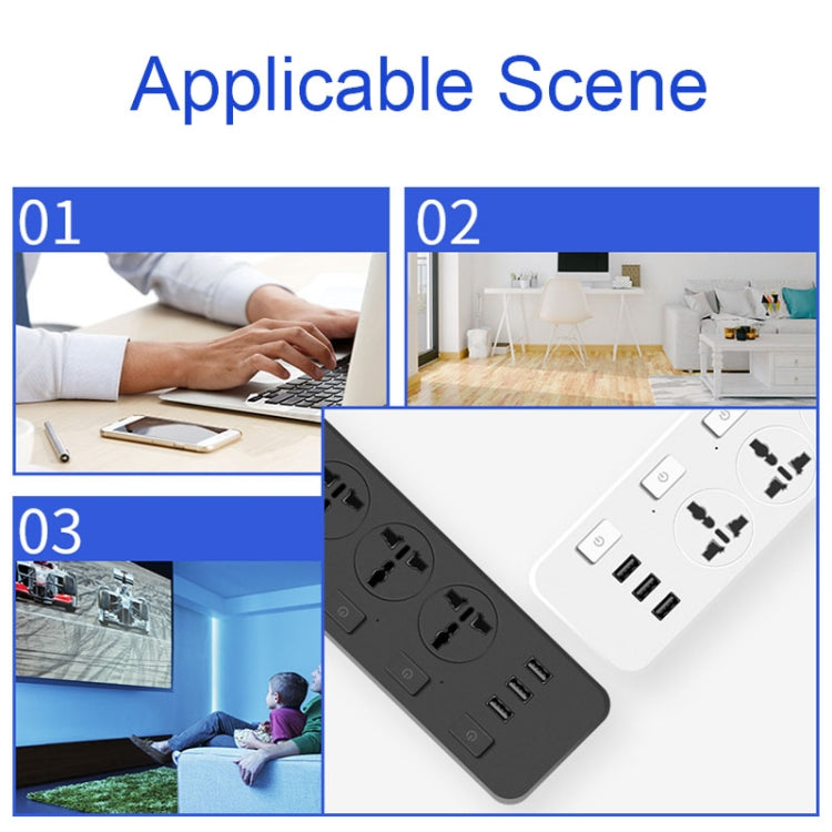 T14 2m 2500W 3 Plugs + 3-USB Ports Multifunctional Socket With Switch