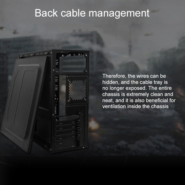 5. 1 x 12cm cooling fans are reserved for the side panels, 1 x 6cm cooling fans are reserved for the back window.