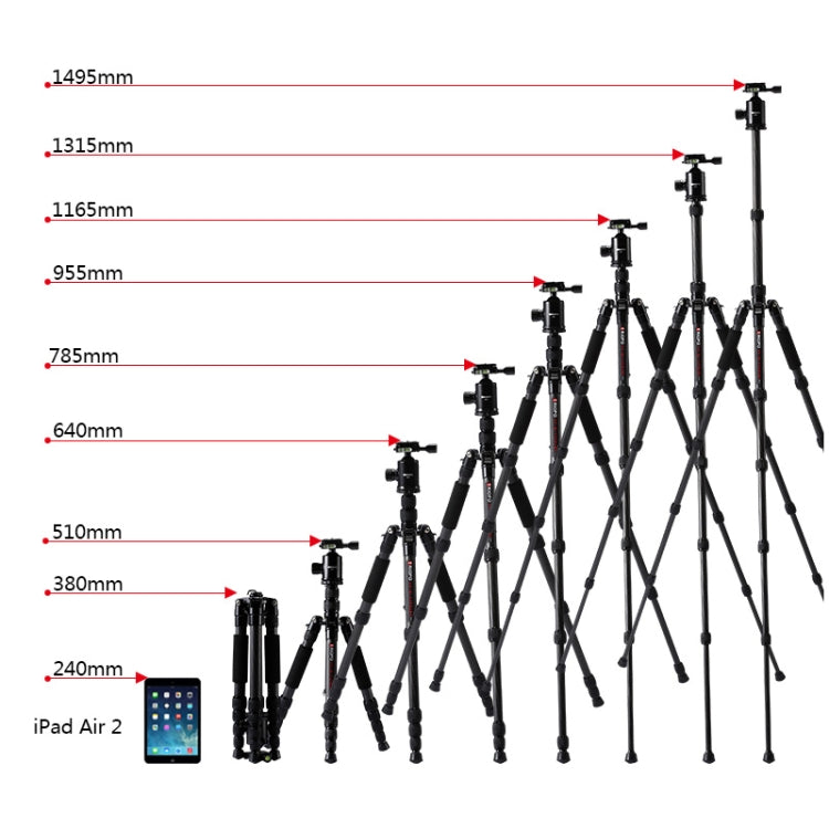 TRIOPO T259G+Q2 Adjustable Portable Carbon Fiber Tripod with Q-2 Ball Head for SLR Camera