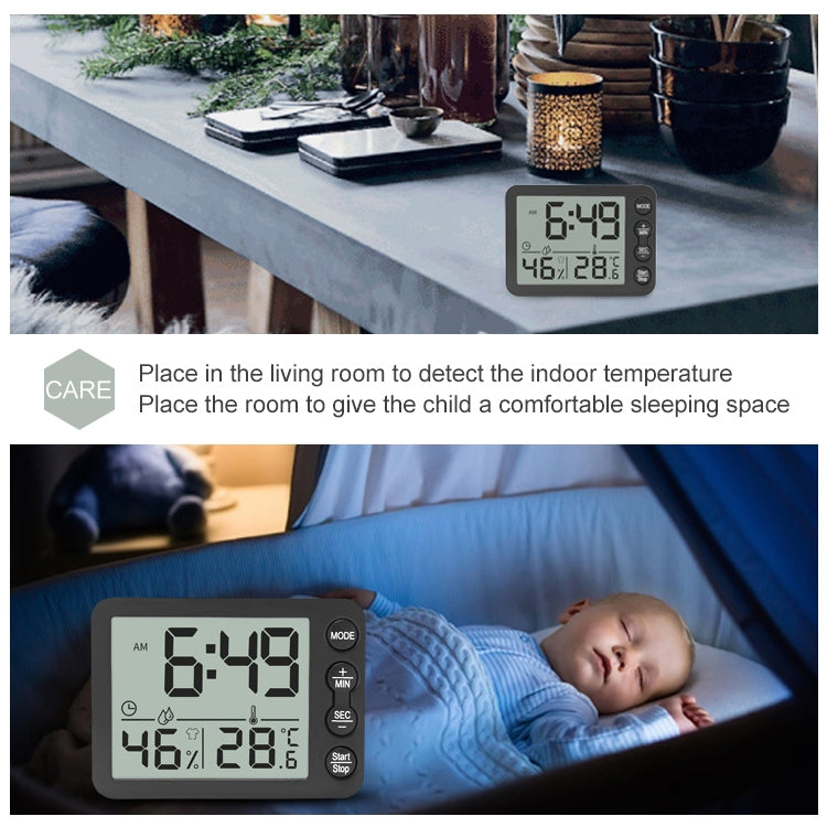TS-9606-WR Large Screen Alarm Timer Temperature Humidity Meter(White Red)