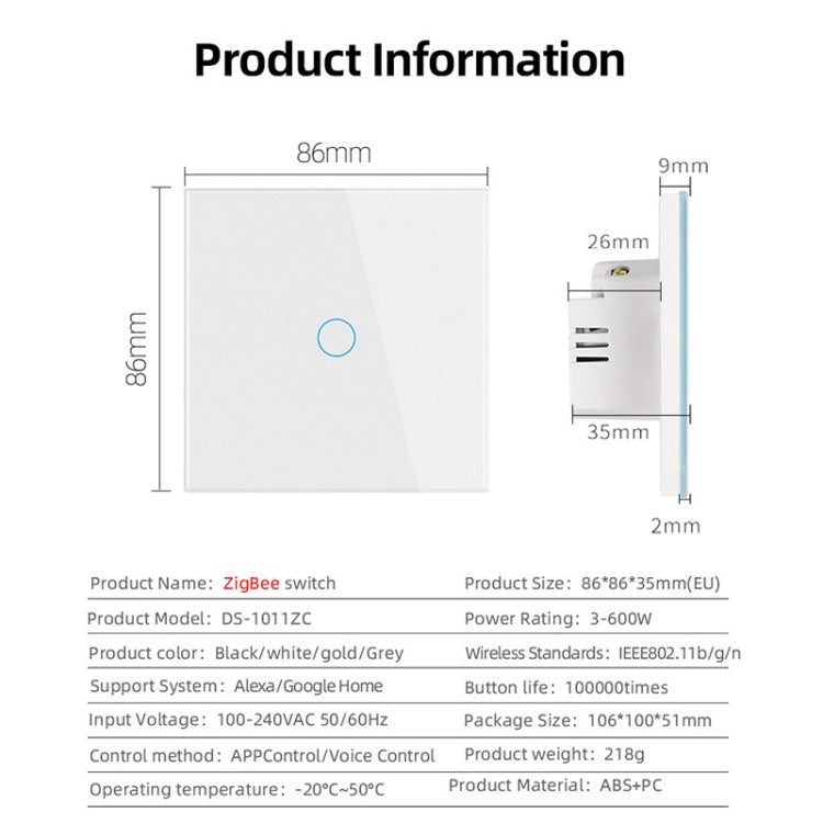 Tuya ZigBee Zero Firewire Touch Wall Remote Control Switch Light Control Voice Switch EU Plug, Style: