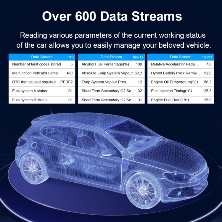 2. Support more than 600 data streams: read various parameters of the cars current working state, allowing you to easily manage your car.