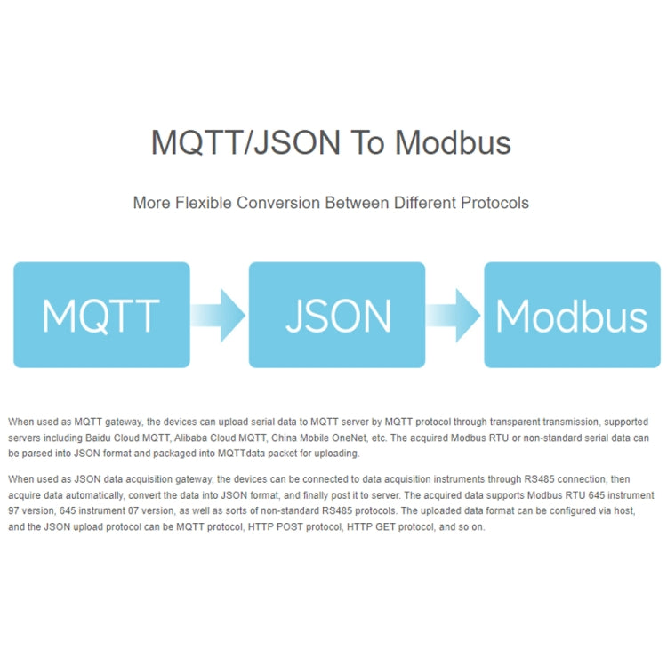 2. It integrates multiple functions, including serial port server, Modbus gateway, MQTT gateway, RS232 and RS485 to JSON, etc.