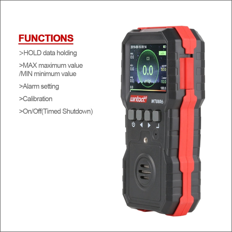 WINTACT WT8806 Carbon Monoxide Monitor Professional Rechargeable Gas Sensor High Sensitive Poisoning Sound-light Vibration Alarm CO Detector