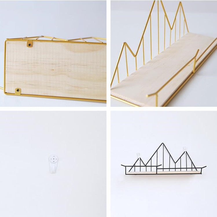 Wrought Iron Wooden Slotted Clapboard Shelf Home Decoration Wall Rack