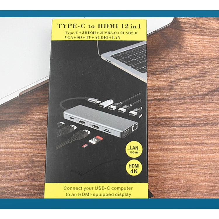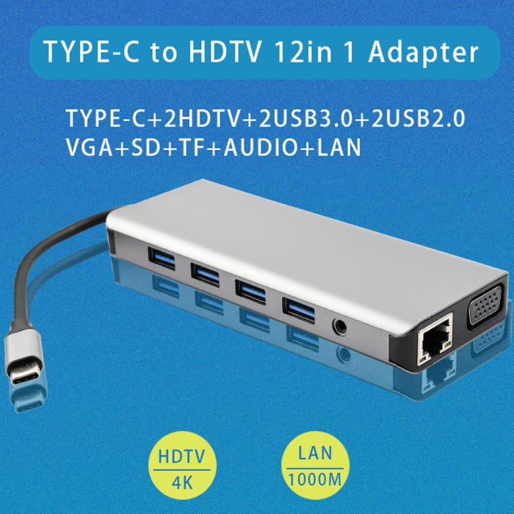 1. 12-in-1 interface: Type-c to VGA+LAN rj45+HDMI x 2+USB3.0 x 4+SD+TF+3.5mm Audio+PD fast charge