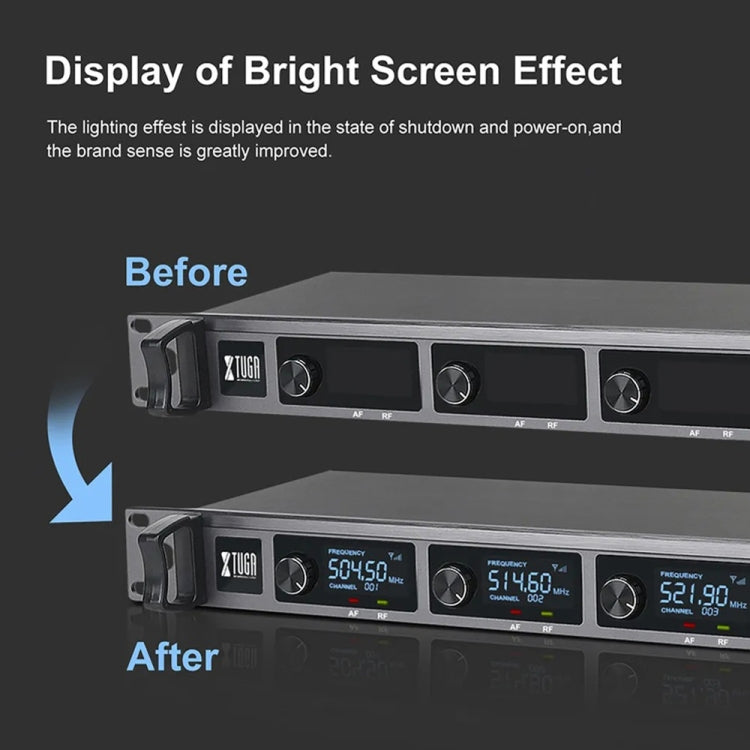 1. Professional Level UHF Wireless Microphone system:Professional UHF microphone system delivers clear and lound audio signal and is much more stable than the VHF, 4-channel wireless microphone receiver,Fixed frequency,Group A 504.50MHz, 514.60MHz, 521.90MHz, 538.70MHz,superior anti-interference ability.Upgraded wireless signal acquisition, 2 antennas can be installed on the back of the receiver to enhance the received signal, ensuring high frequency stability and accurac