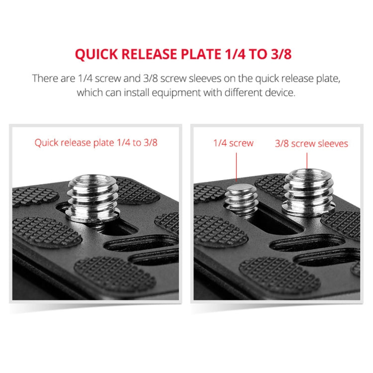 6. There are 1/4 screw and 3/8 screw sleeve on the quick release plate, which can install equipment with different device