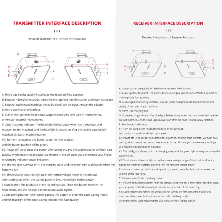 8. The product has a built-in microphone and an external microphone port. The external microphone has a small collar holder, which can be easily and quickly fixed on the chest clothes, allowing users to use more flexible and convenient