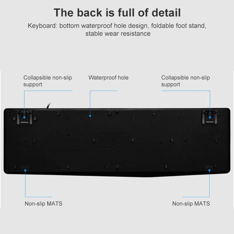 4. Strong and durable, with built-in waterproof conductive membrane and drainage holes, which can drain the liquid out of the keyboard and use it freely.