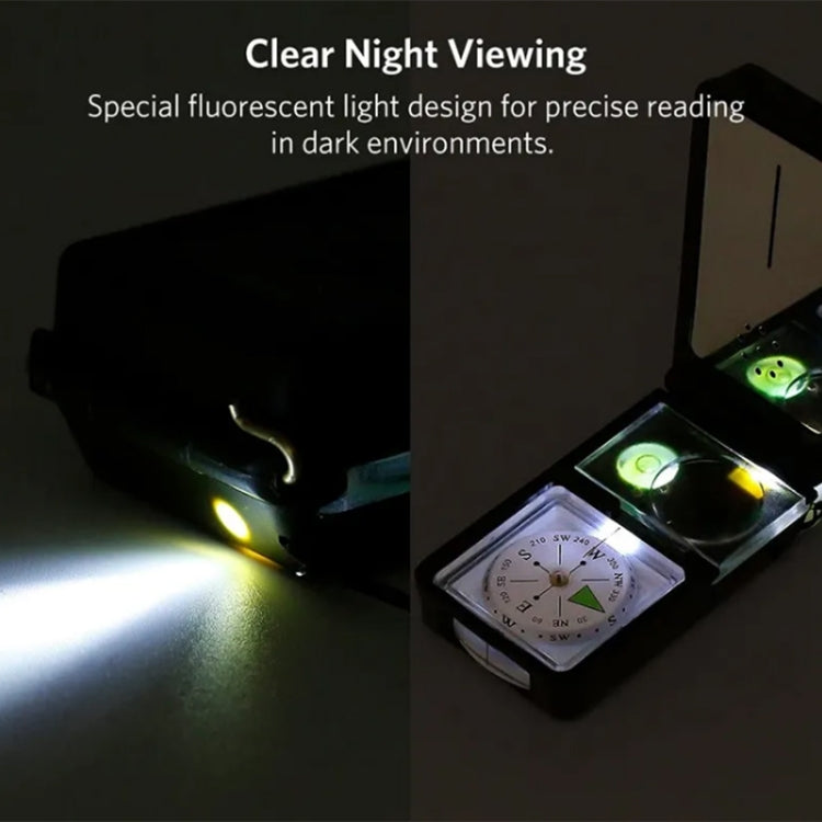 10 in 1 (Thermometer, Hygrometer, LED light, Reflector, Spirit level, Compass, Whistle, Flint, Magnifier, Ruler) Multi-Function Portable Compass