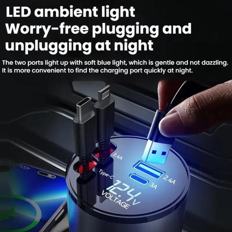 100W Metal Car Retractable Cable Cigarette Lighter Charger