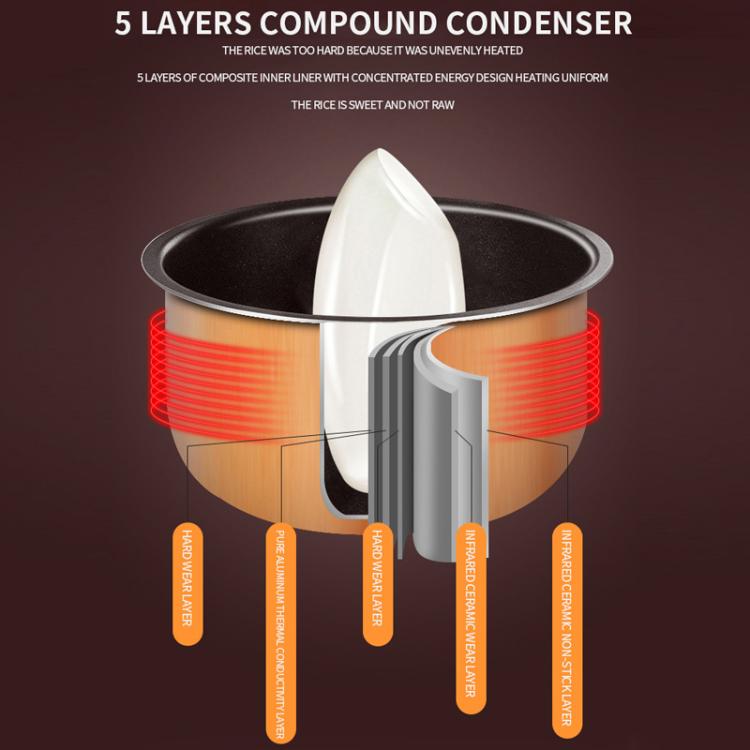 9. 5-layer composite lining uses a concentrated energy design for even heating, ensuring sweet and delicious rice without overcooking.