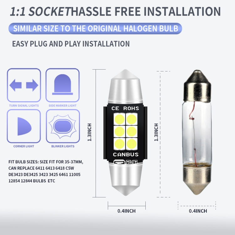 2 PCS 36mm DC12V-24V 3W 6000K 660LM 6LEDs SMD-3030 Car Reading Lamp / License Plate Light